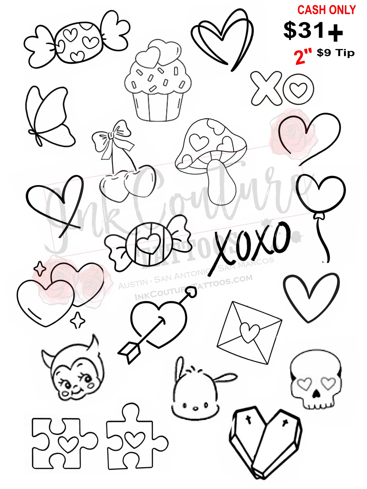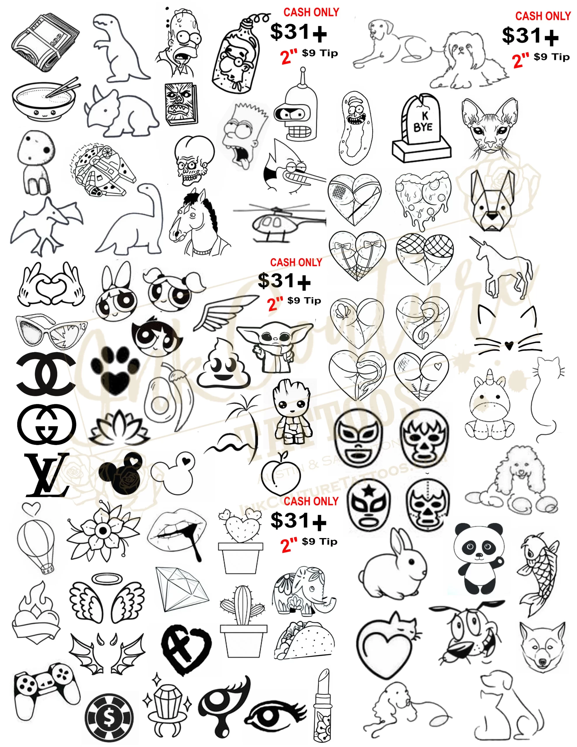 $31 Tattoos + $9 Tip (2 inch designs)