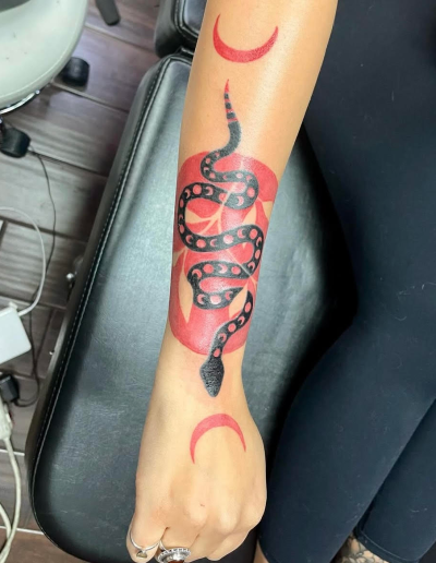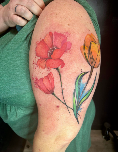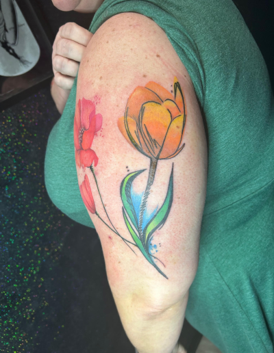 What other styles are you known for? Bold color tattoos, cover-ups, traditional, neo-traditional, and Japanese inspired tattoos are among the styles I'm known for.