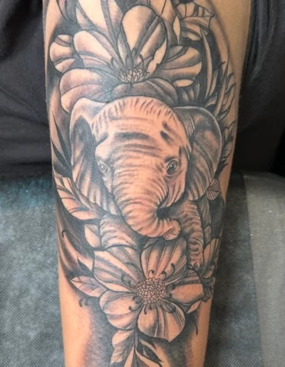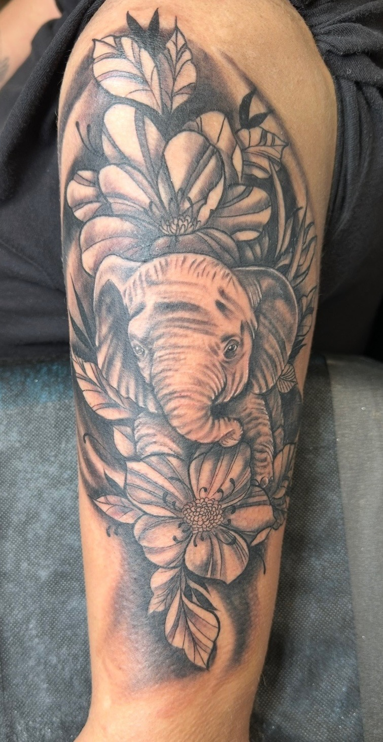 My foundation is black and grey realism—that’s where my discipline and technical fundamentals were built. Over time, I expanded those foundations into a more neotraditional approach, blending realism with bold structure, contrast, and longevity. The result is a style that’s both detailed and timeless.