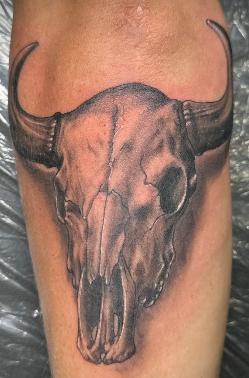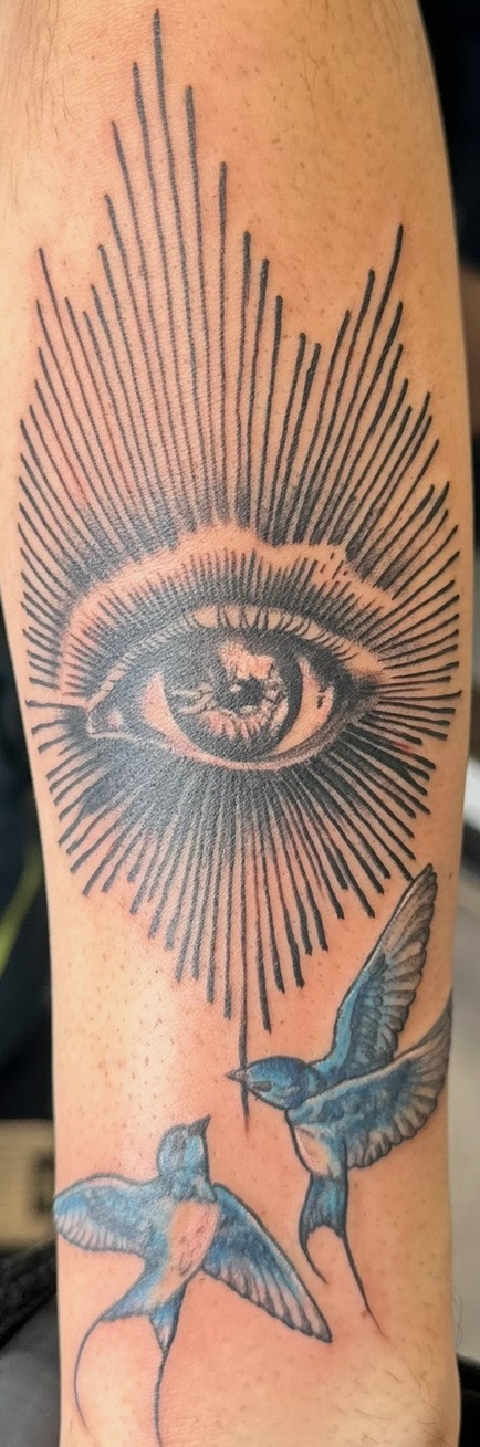 various mediums and canvases. Tattooing became a natural extension of that upbringing: a living, breathing canvas where art carries meaning for life.